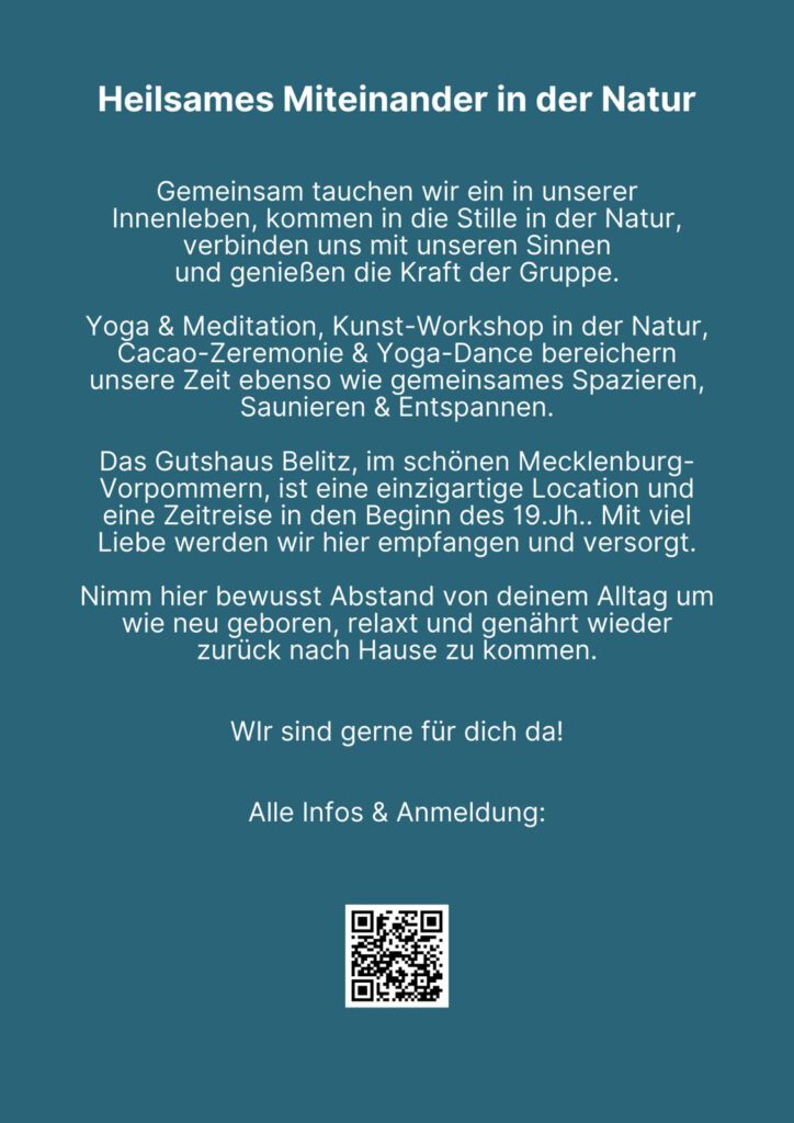 Vom 29.05. – 31.05.2026 findet ein Yoga – Kunst Retreat im Gutshaus statt:
